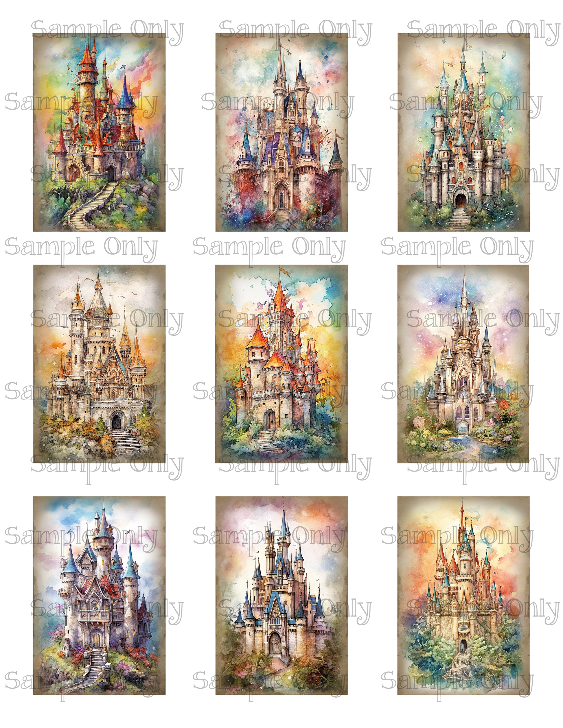 2x3 Inch Colorful Castles Water Soluble Image Transfer Sheet For Polymer Clay Transfer Decal PRINTED