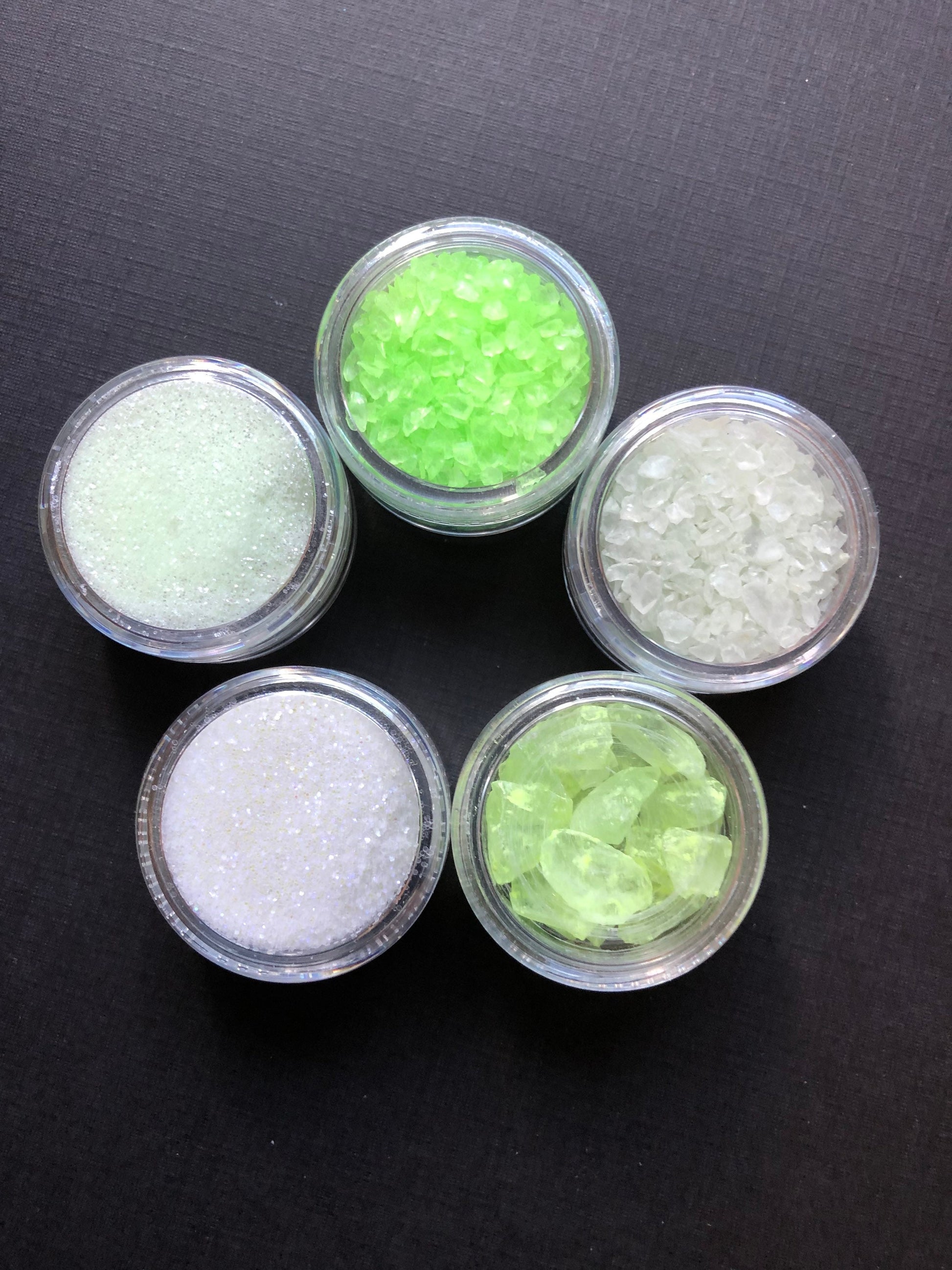 5 Jars Of Assorted Glow In The Dark Luminous Rocks Glitter Dust Phosphorescent Crushed Glass