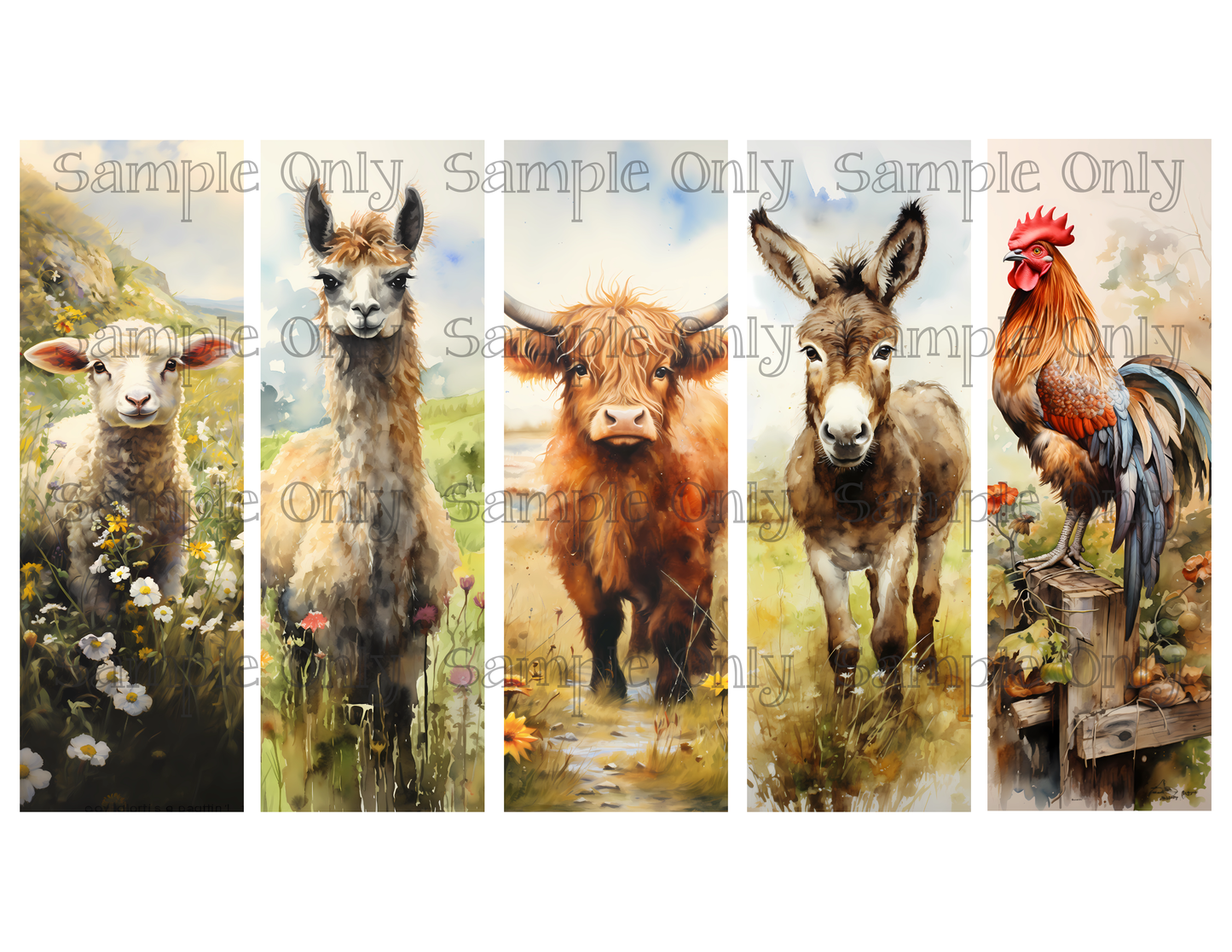 Farm Animals Bookmark Set 02 Printed Water Soluble Image Transfer Sheet For Polymer Clay