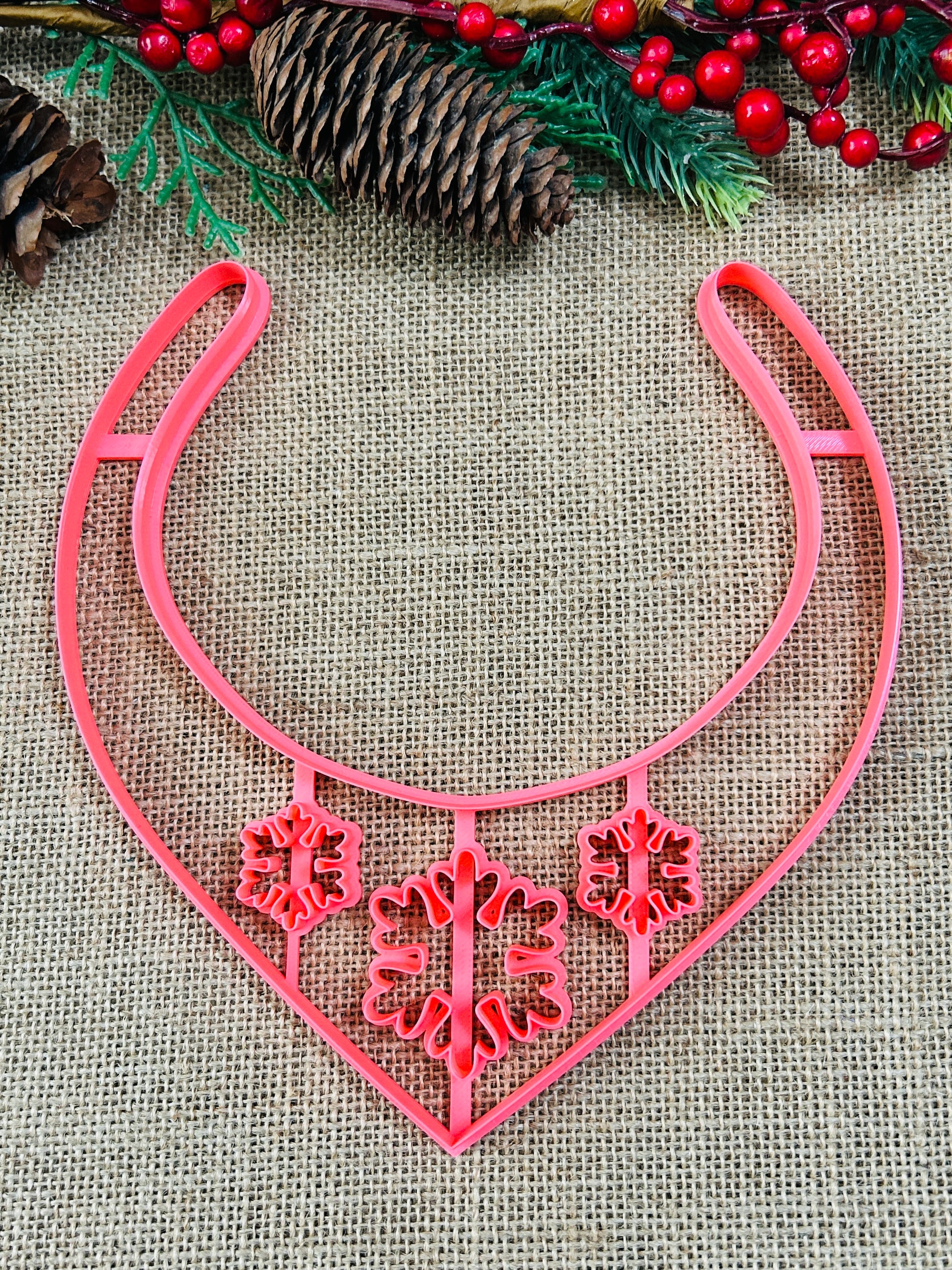 This polymer clay cutter has a super sharp .4 edge. It measures approx. 6&6/8 inches wide x 7&1/8 inches tall. The snowflakes cut out.