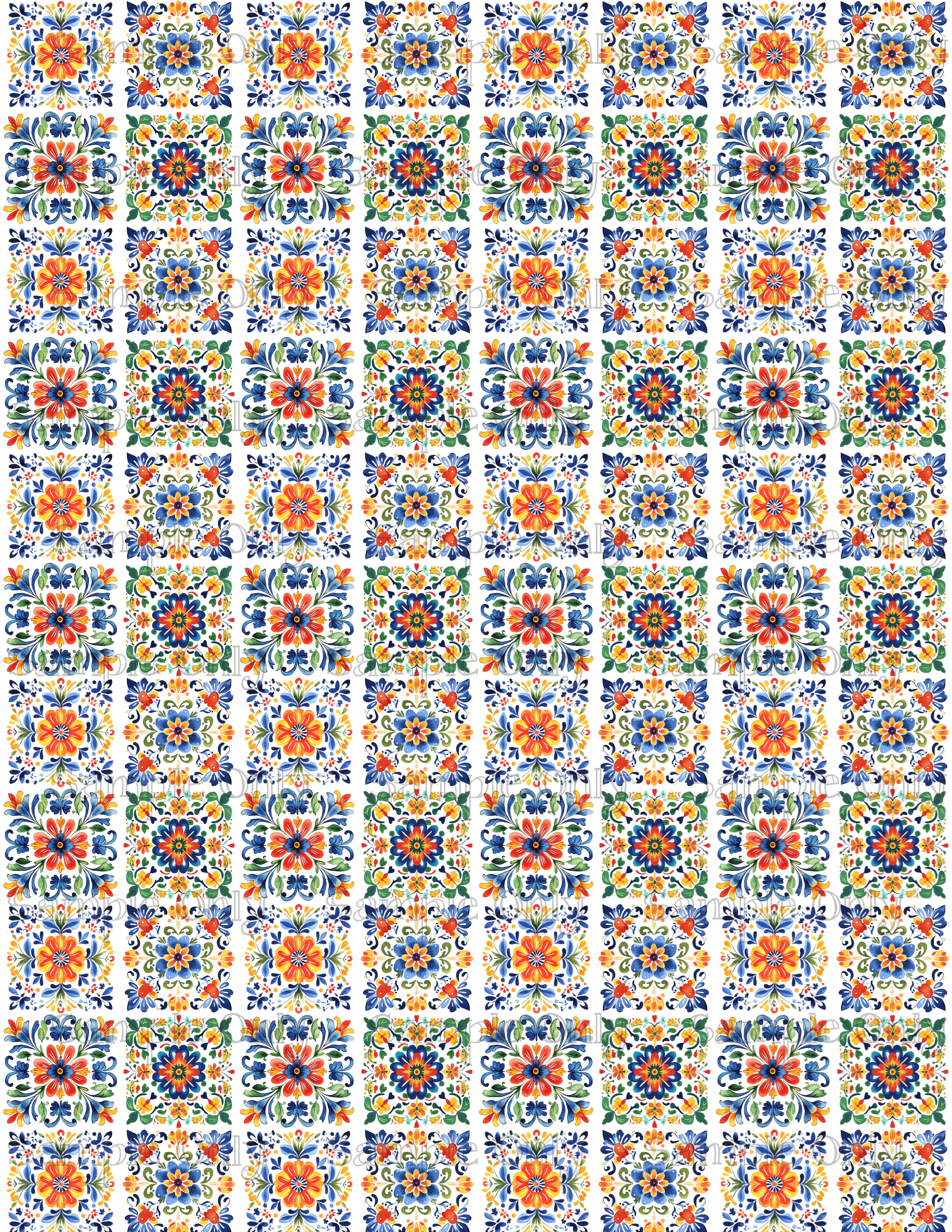 Talavera Pottery Colorful Tiles Pattern Style 1 Image Sheet For Polymer Clay Transfer Decal DIGITAL FILE OR PRINTED